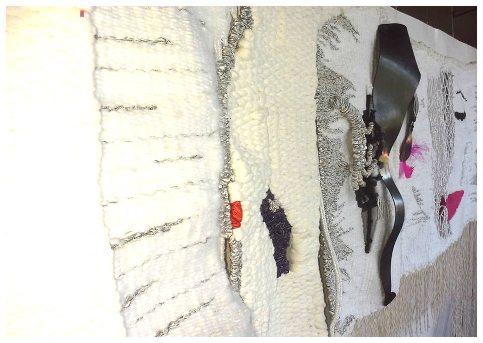 One of the participating artists, DINA RESCA was born in Resistencia, Province of Chaco in northeastern Argentina. Back in the ‘80s she was introduced to loom weaving by Ana María Pratti, an Argentine residing in Italy, who lovingly taught Dina the hidden rules of this millenarian tool. Since then, Dina has been passionate about weaving.Later on, Silke (a multidisciplinary textile artist,) opened up Dina’s five senses into all directions, and increased her capacity to perceive colors through imagination.Dina participates with two pieces from her Chrysalis 2013 series.CHRYSALIS 2013Skin calls you to existence.Your senses, your summits, your valleys in dance to your feminine rhythms, reign.Your body speaks.Your clay color reminds me of the body that reminds. Women are from the earth, from the shaping of wood, and the ruling of their parcels.Your body is a piece of this earth.Chrysalis, princess of feelings, majesty of force and breath; empress of fertile hips, and memories. You are Everything from the same Nothingness. You are Soul.Other textile creators participating in this show are: Clara Luz Glis, Daniela Tavarone, Mirta Zak, Ana Zlatkes, and Roberta Bacic. Information: http://flacso.org.ar/noticias/las-ideas-de-la-democracia-de-la-palabra-a-la-imagen/ |