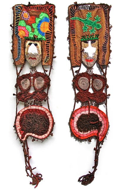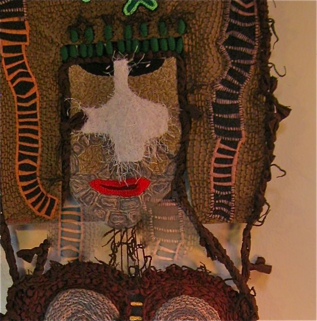 Linen was brought to Costa Rica during the Spanish conquista, and as a child it was very common to watch Mother embroider her tablecloths and napkins. She would give me remnants to entertain myself while she embroidered, and I fantasised by making dolls and puppets—one of which was the devil (“El diablo”), a mask used in the Boruka indigenous culture—all out of imported linen. Thus, the present artwork represents my childhood memories as well as the mestizo tradition still in existence: “El diablo”, which in my case is made with unfinished linen napkins from 55 years ago.