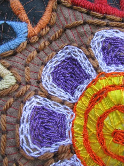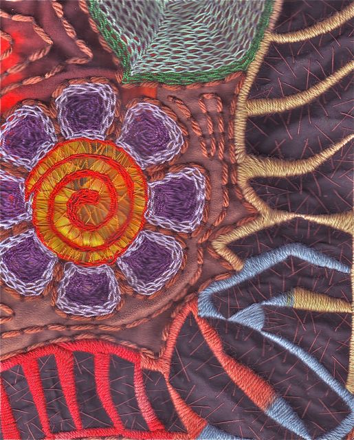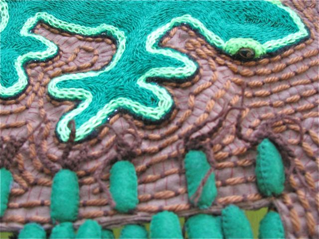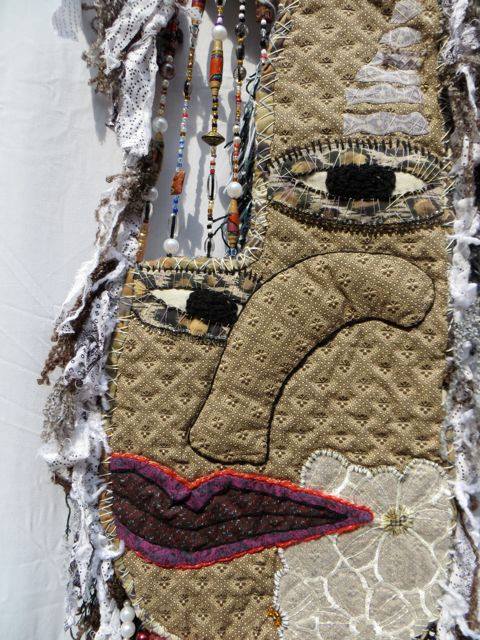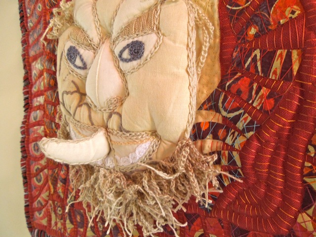 “El diablo“. Hand embroidery, paper appliqué, and quilting. 54 X 40 cm. 2014